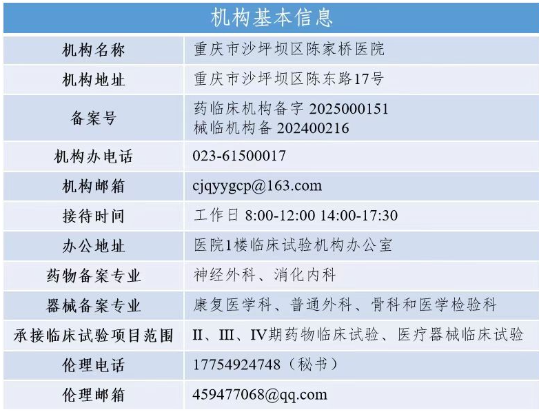 重庆陈家桥医院药物与医疗器械双临床试验机构备案获批 临床科研迈入新阶
