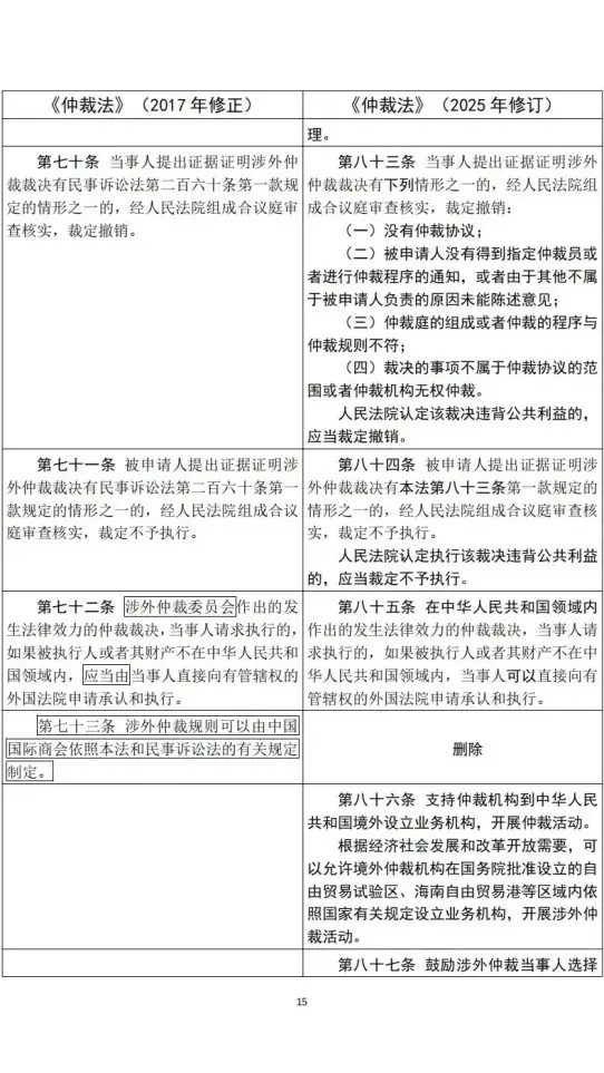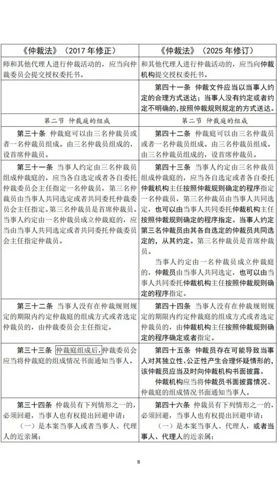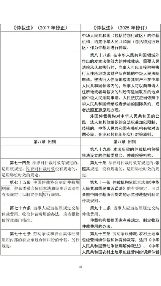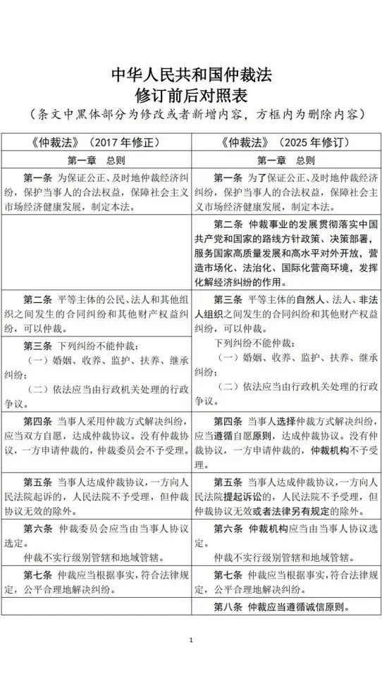《中华人民共和国仲裁法》已由中华人民共和国第十四届全国人民代表大会常务委员会第十七次会议于2025年9月12日修订通过,根据中华人民共和国主席令(第五十四号)予以公布,自2026年3月1日起施行。为更好学习领会新仲裁法精神,上海国际仲裁中心制作了修订后的仲裁法与现行仲裁法的对照表。下一阶段,上海国际仲裁中心将按照司法部和上海市的有关部署,深入开展学习新仲裁法和积极开展宣传新仲裁法的有关工作,努力借助修法的赋能提高自身仲裁公信力和国际竞争力,更好服务高质量发展和高水平对外开放。