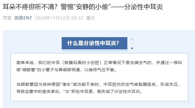 耳朵不疼但听不清?警惕“安静的小偷”——分泌性中耳炎